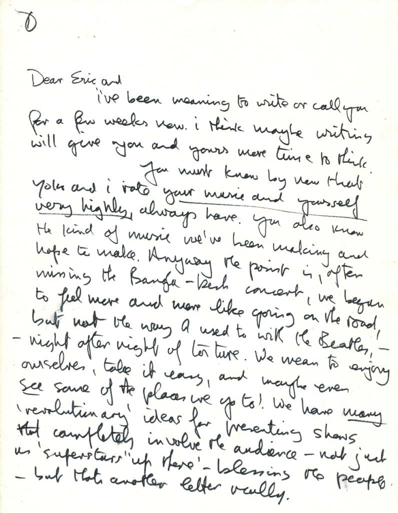 In the letter, Lennon hints at Clapton’s issues. On the group itself, Lennon says: “Eric, I know I can bring out something great, in fact greater in you that had been so far evident in your music. I hope to bring out the same kind of greatness in all of us, which I know will happen if/when we get together.”